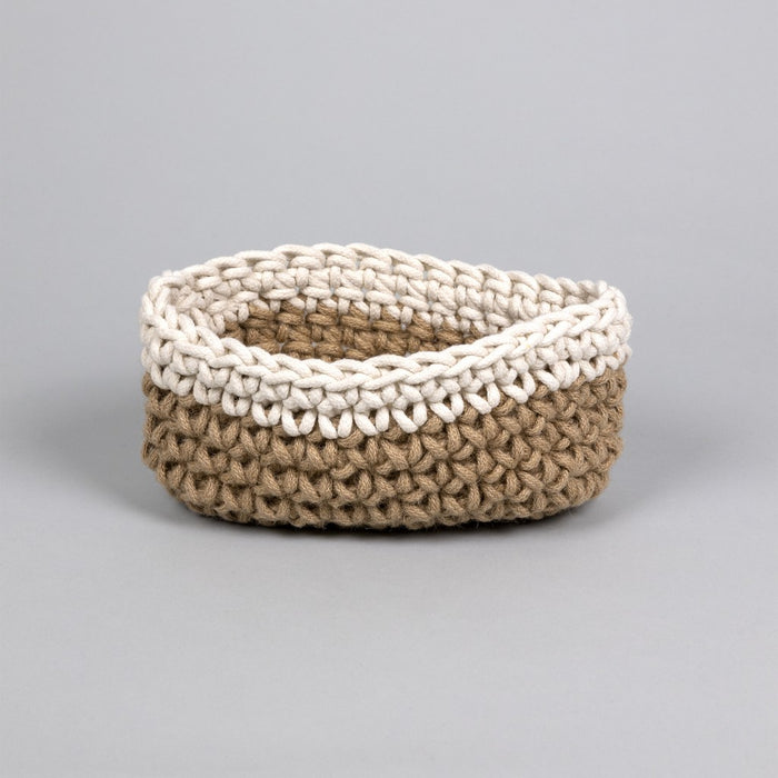 Add a touch of vintage design to your houseplants with this White and Beige Crochet Planter. The planter is entirely handmade and features a thick crochet yarn looped together to create a cute little planter. The bottom two third of the planter is made from a beige yarn, while the upper third is made from a white yarn. This planter is very light-weight and can be moved around easily. You can also hang it up to fit your aesthetic style. Use this planter in your living room, your bedroom, or even your entryway, and it will look great owing to its neutral colors and simple design.