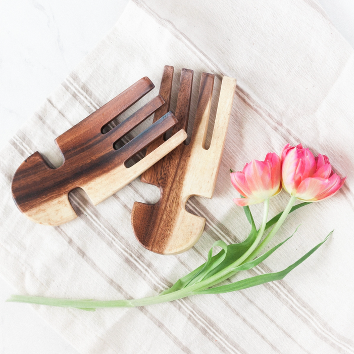 MANOS PARA ENSALADA DE MADERA DE ACACIA