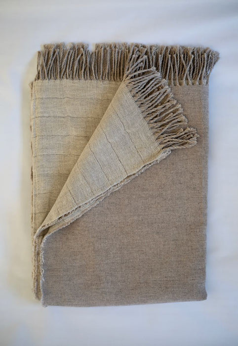 Tejido rústico y sencillo. Tonos terrosos tranquilos. Esta manta tiene un peso considerable sin ser voluminosa. Un lado Lino y el otro lado Merino Lambswool.