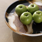 Crafted from richly marbled resin, this pedestal tray captures the fluid movement of cream swirling into dark coffee. The blend of espresso and white tones creates depth while remaining grounded in a neutral palette. Sculptural yet functional, it adds height and contrast to tables, vanities, or kitchen counters.