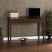 Designed with a regal style, the Espresso Desk with Drawers profoundly accents the glam quotient. Matching colored knobs perfectly compliment two deep drawers, providing ample storage space. The traditional carved spindle legs paired with the lustrous white finish creates a beautiful combination of class and magnificence. A striking beveled brown desk makes it practical for working, writing, studying or even serve as a side table. An impressive addition to any home, the classic brown desk is a quintessential choice. 30.25" x 42.75" x 23.5".