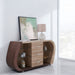 Space constraints in your dining area? Then this versatile storage buffet is the solution to all your home decorating needs. Storage problems disappear thanks to this buffet's abundant shelf space and drawers. Incorporating solid woods and veneers in a multi-toned oak and walnut-look finish, this buffet is an easy fit for many room decors and will add drama and sophistication to any room environment. Quality construction ensures durability and long lasting wear. This buffet is a smart choice for the discerning shopper and will give you the flexibility you need without sacrificing unique appeal.
