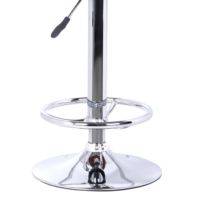 Induce a charming allure in your modern or contemporary home with this alluring Cream Faux Leather Chrome Finished Bar Stool. Constructed using a metal base and a leatherette cushion with wooden accents, the chair has immense structural integrity and will serve you through the ages. Swiveling 360-degrees, the stool is adaptable to any room of your home or office. The cushion in cream-toned faux leather with a wooden accent is perched atop a contrasting chrome base that gives it a custom-made retro-modern look. The cushion ensures utter comfort with the high density padding and the adjustable height of the stool, the highest being 33 inches and lowest being 24 inches, is an added bonus. The captivating charisma and design of this swivel chair is ideal to be the centerpiece in a modern or contemporary style interior. 33” x 17” x 18”.