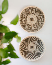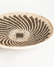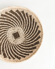 This striking 18-inch woven basket comes from an area of Zambia renowned for its distinctive weaving style and skill. Palm leaves are dried in the sun and then colored with natural dyes to achieve a rich dark brown hue. Use this basket to decorate your walls or as an eye-catching tabletop centerpiece. Each basket is slightly unique and takes days to make.
