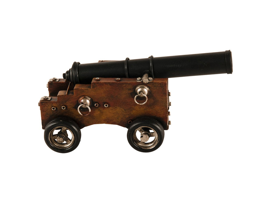 Authentic and super detailed, the Warship Canon Sculpture is a unique handmade replica of the naval canons used on warships from 1550 to 1850. It was handmade by a master craftsman in 100% metal and features unique details. It features many details as rolling wheels and chain rings. Painted in vintage green, it is a great display piece and a sought-after piece for automobile enthusiasts.