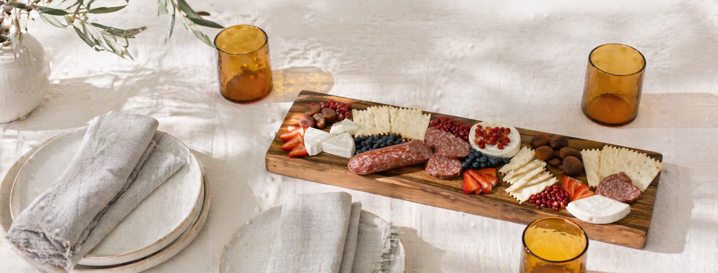 Modern meets timeless with this exquisitely hand-crafted acacia wood charcuterie board. Its minimalist design is complemented by beautiful rich woo...