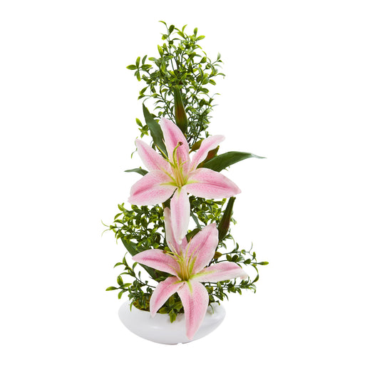 LILY AND BOXWOOD ARTIFICIAL ARRANGEMENT