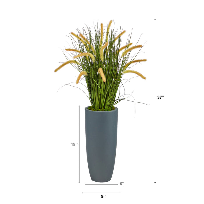 37” ONION GRASS ARTIFICIAL PLANT IN GRAY PLANTER