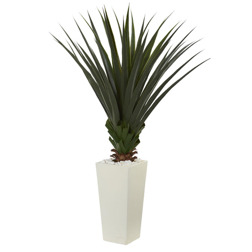 5' SPIKY AGAVE ARTIFICIAL PLANT IN WHITE TOWER PLANTER