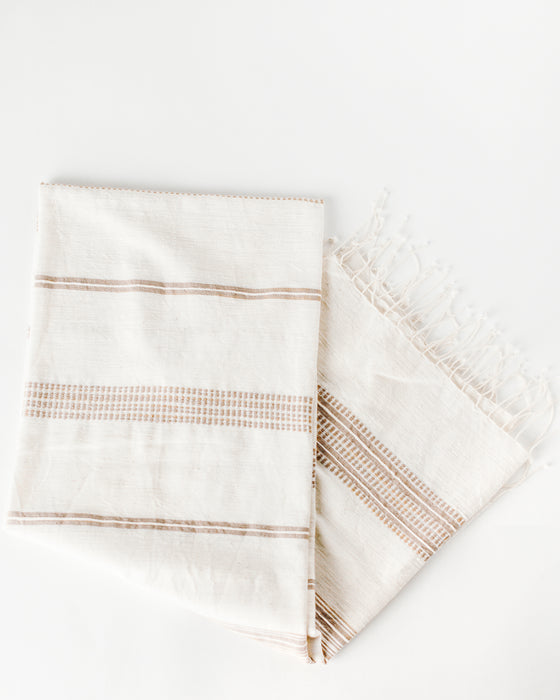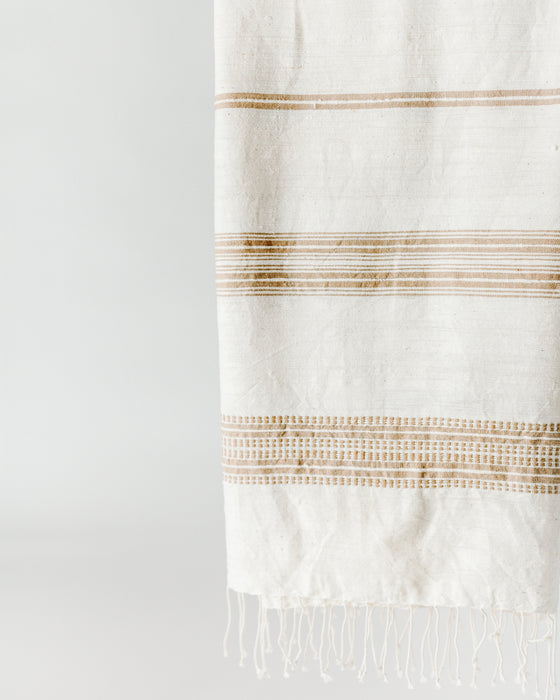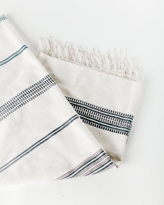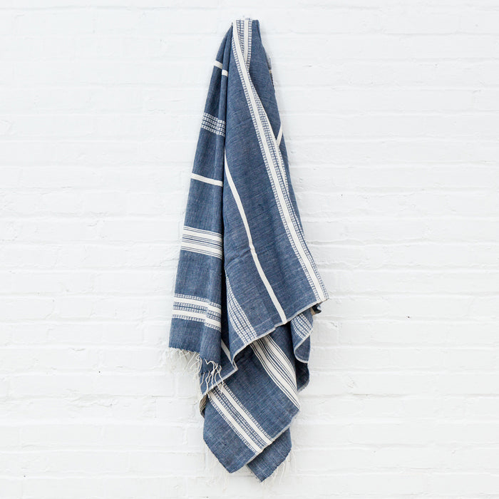 A consistent best-seller, our Aden collection is classic yet on trend and available in 9 color ways. These versatile hand-woven pieces can be used as bath towels, lightweight shawls and accent throws. Each is hand-woven in Ethiopia using time-honored weaving traditions and AZO-free dyes. Hand-spun Ethiopian cotton adds a uniquely rich texture that will continue to soften and become more absorbent with each wash/dry.