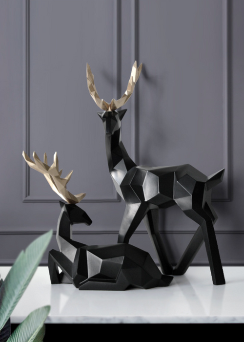 Sure to be the most striking animal silhouette in your room or office, our majestic deer statue with his wide antlers is scaled for proud display in Hygge Home. Our stag deer sculpture is cast in quality designer resin and hand-painted in a naturalistic palette. Perfect as a tabletop decoration.