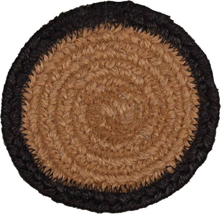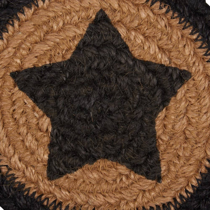 The Farmhouse Jute Coaster Stencil Star Set of 6 is just right for the dining room or family getaway. Jute is a naturally absorbent material making it perfect as a coaster. Featuring alternating braids in black and tan and a stenciled center black 5 point star.
