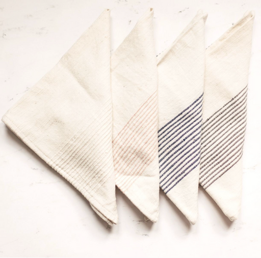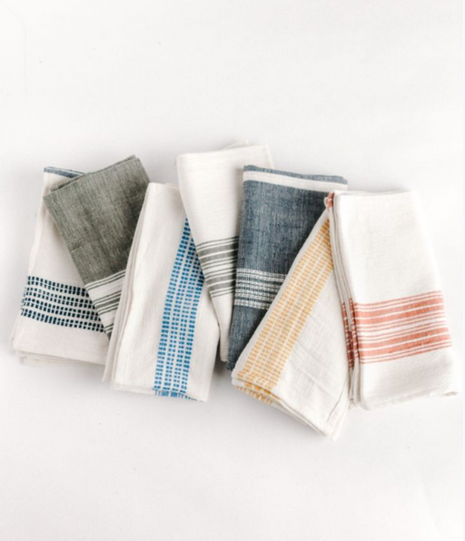 Each napkin is hand-woven in Ethiopia using time-honored weaving traditions and AZO-free dyes. Hand-spun Ethiopian cotton adds a uniquely rich texture that will continue to soften and become more absorbent with each wash/dry.