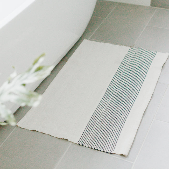 Each mat is hand-woven in Ethiopia using time-honored weaving traditions and AZO-free dyes. Hand-spun Ethiopian cotton adds a uniquely rich texture that will continue to soften and become more absorbent with each wash/dry.