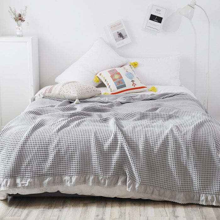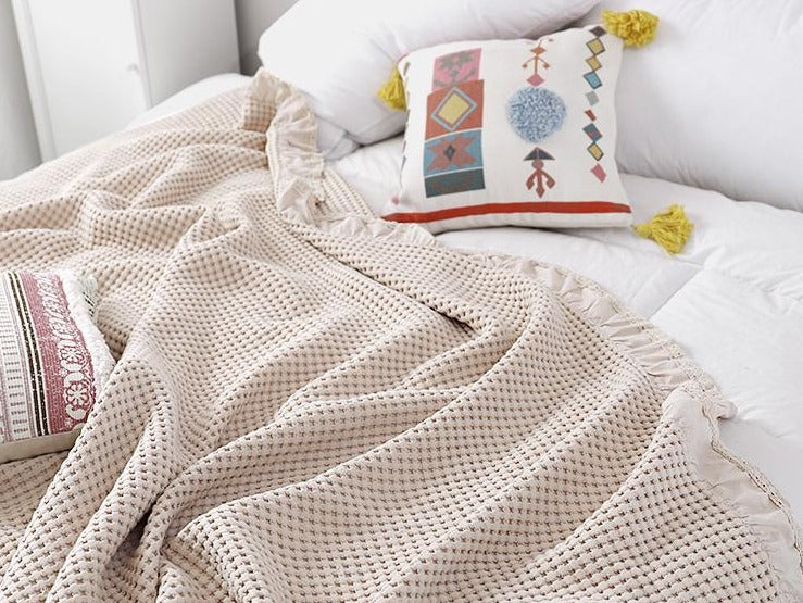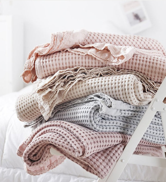 Super Soft Waffle Blanket 100% made from Cotton. A throw blanket can not only keep you warm and cozy when you are cold, but also freshen the look of your house. It can make your old sofa take on a new look or change the style of the whole bedroom. Multipurpose use for sofa, bed, couch, chair, office, car and travel.