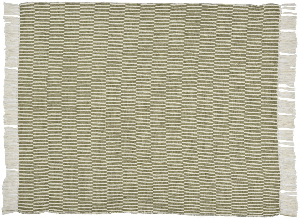 SOFT SAGE AND WHITE LINES HANDCRAFTED THROW BLANKET