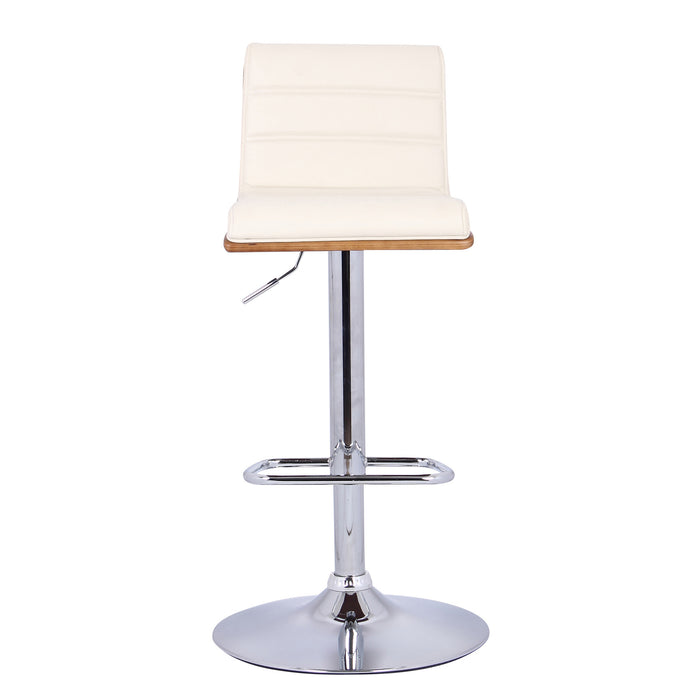 FAUX LEATHER WALNUT AND CHROME ADJUSTABLE BAR STOOL