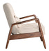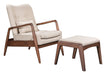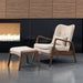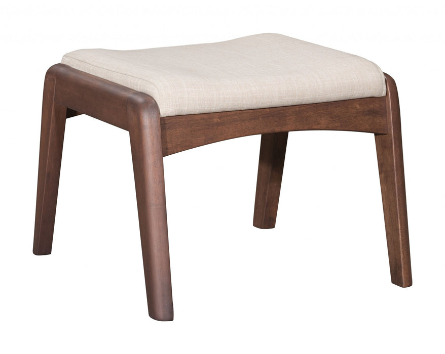 WALNUT AND BEIGE LINEN RETRO CHAIR AND OTTOMAN SET