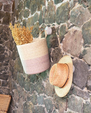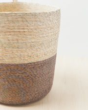 Masterfully woven in Mexico from braided palm leaves, each basket takes days to complete. Artisans carefully select the best palm leaves, then dry and weave them using methods passed down through generations. This classic yet functional design pairs natural palm with a block of subtle earthy color.