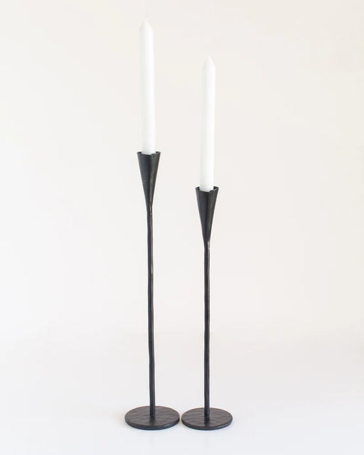 This unique set of candle holders draws inspiration from nature's sleek organic beauty. Hand-forged by traditional blacksmiths in India, our iron c...