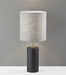 This table lamp is a beautiful lighting choice that is versatile enough to fit into any room of the home. Crafted of black poplar wood with a touch of antique brass metal, this lamp will add a classy touch of tailored styling to your home. A light grey textured fabric softens the look. At 30.5" high, this table lamp is a substantial addition with a compact, 13" footprint that still fits into tight spaces. Turn the lamp on and off with a convenient switch on the socket. All lighting product is either UL or ETL listed, meaning that it has been tested and approved to meet the government-regulated safety standards for the USA. Bulb is not included.
