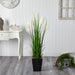 Enhance your space without the worry of upkeep with this Wheat Plum Artificial Grass Plant. Different sized grass blades form a fountain of green foliage that brings symmetry and lines to spaces in need of depth. To soften the look, yellowish textured plumes add a simple yet elegant touch. Standing 4.5’ from a black metal planter, curate in small spaces that need more life. Perfect for awkward corners, apartments, bathrooms, bedrooms, or foyers.