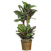 Despite its popular nickname, this prayer plant’s leaves will not fold up when you turn out the lights. A common favorite among houseplants, this vividly colored Maranta will never lose its luster. Bold ornately patterned leaves flock both the top and bottom of this gorgeous silk creation. At 45 inches high, it’s sure to make a bold statement. A decorative wicker basket filled with moss is a nice contrast to the bright foliage.