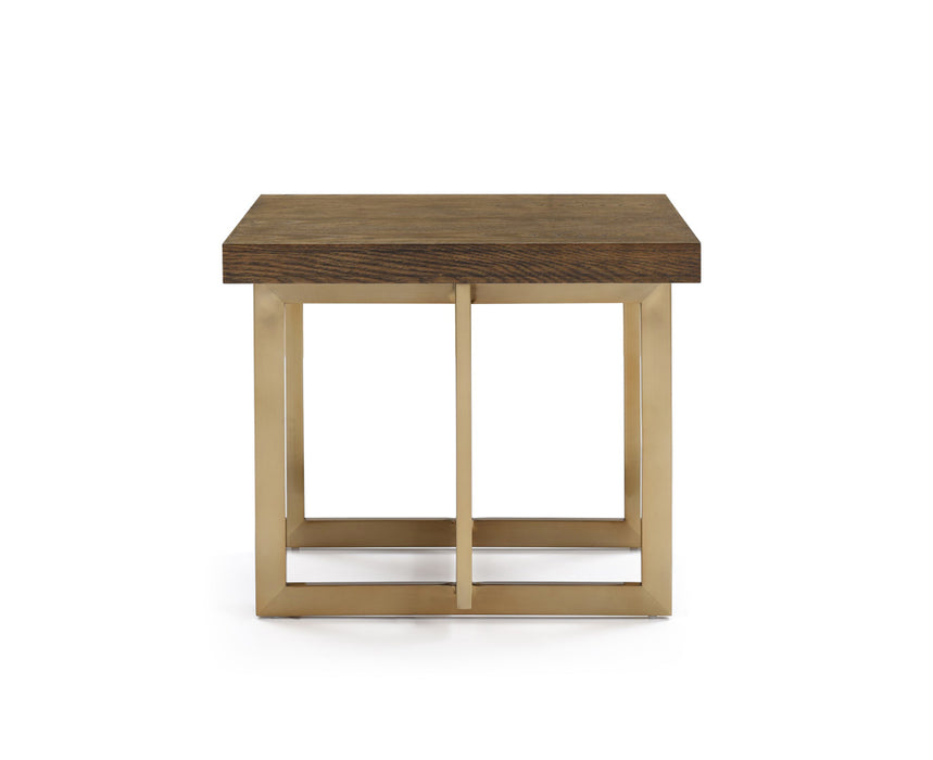 MODERN ELM & ANTIQUE BRASS END TABLE