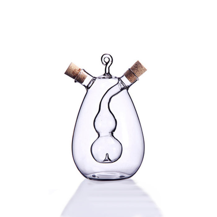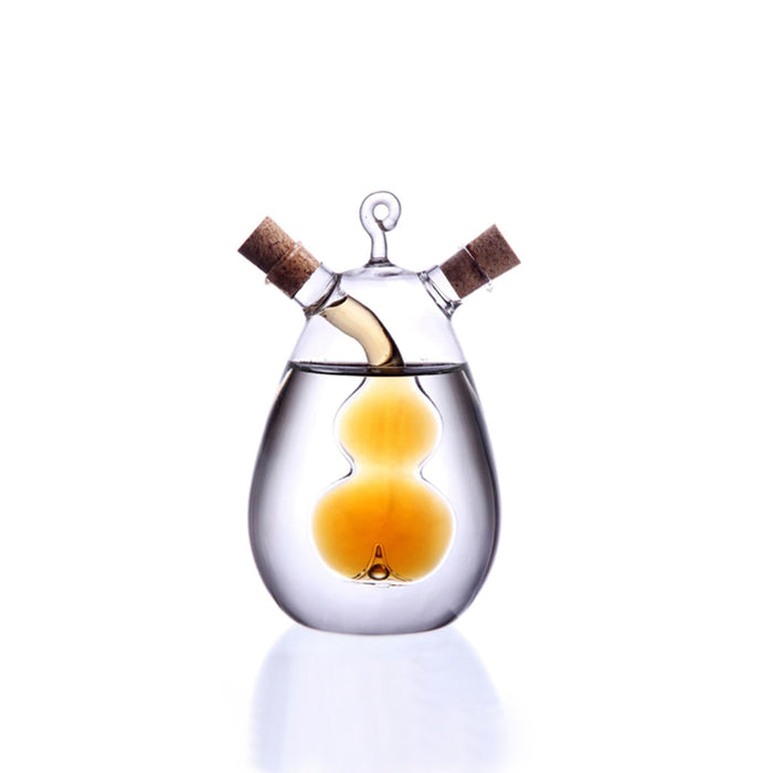 The glass bottle for oil and vinegar is a stylish and necessary accessory in your kitchen. It is a glass flask made of durable quality clear glass, where the inner part is filled with oil and the outer part is designed for vinegar. The dispenser is ideal for grilled dishes, salad dressings with balsamic vinegar, snacks, and for greasing pans or molds. You can control the quantity of oil or vinegar you use. Can be washed in the dishwasher.