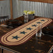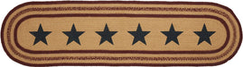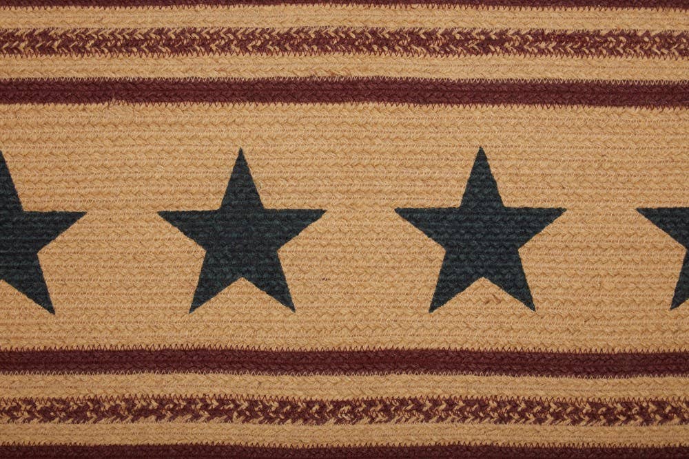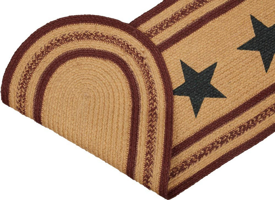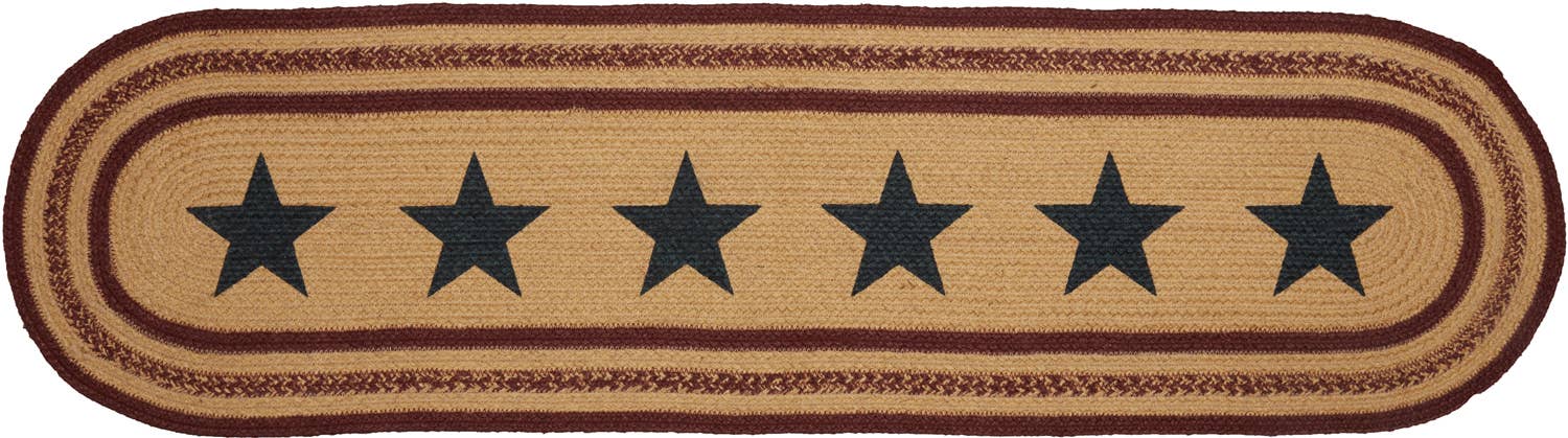 Bring Americana personality to your dinner table when you lay out the 13x48 Potomac Jute Table Runner. This primitive runner features rich burgundy, navy, and natural braided jute for a rustic, yet polished look in any dining space, patio, or kitchen. Add even more rustic charm to your kitchen or dining room by pairing these patriotic table decorations with coasters, kitchen rugs, chair pads, placemats, or trivets from the Potomac collection.