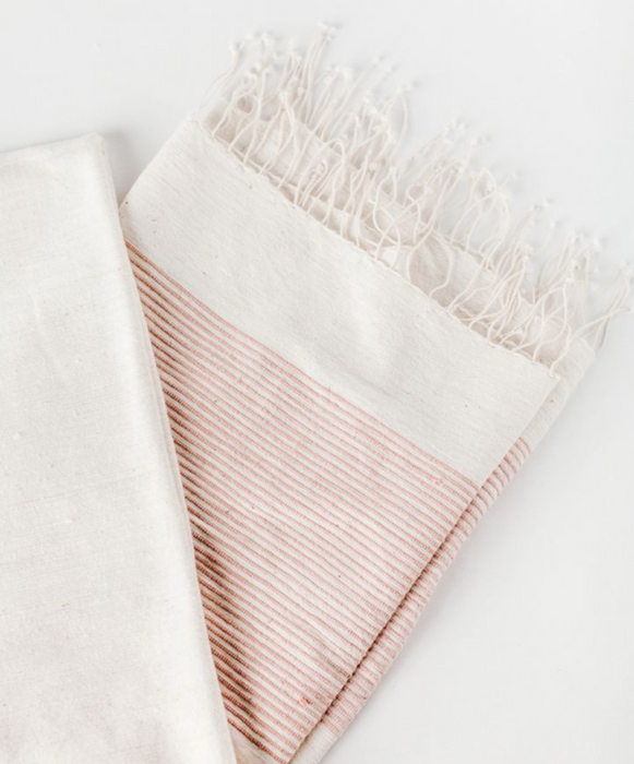 The timeless elegance of natural un-dyed cotton makes this piece perfect for all occasions. Delicate ribbed accents add depth and detail. Exquisitely hand-woven in Ethiopia from local hand-spun cotton, this piece offers rich texture that is durable and easy to care for.