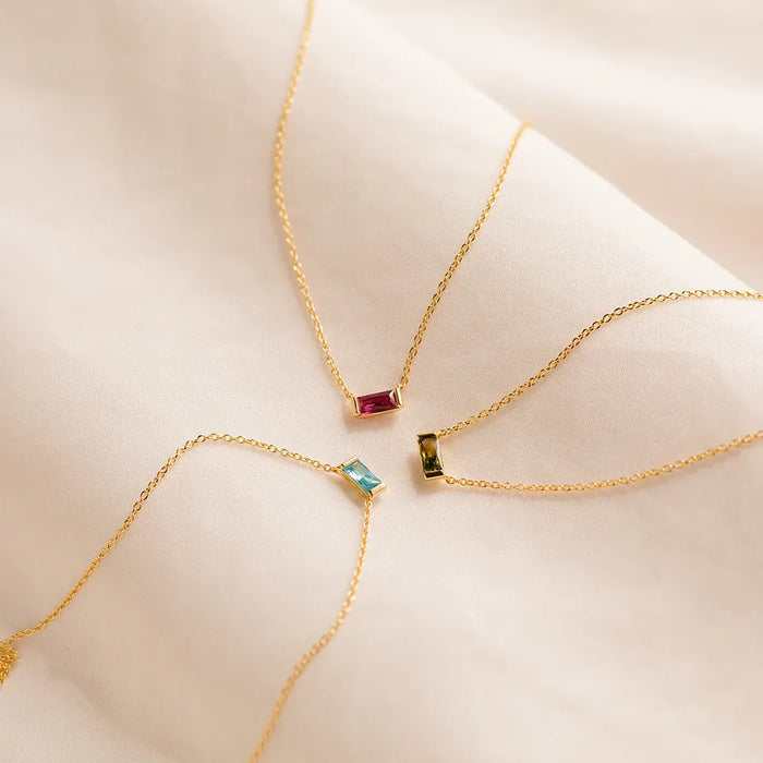 Con una cautivadora piedra de nacimiento baguette, este collar trasciende ser simplemente un accesorio de moda; se convierte en un regalo único y personalizado. Ya sea que esté destinado a un ser querido, un amigo o un familiar, es un símbolo distintivo de su individualidad y singularidad.