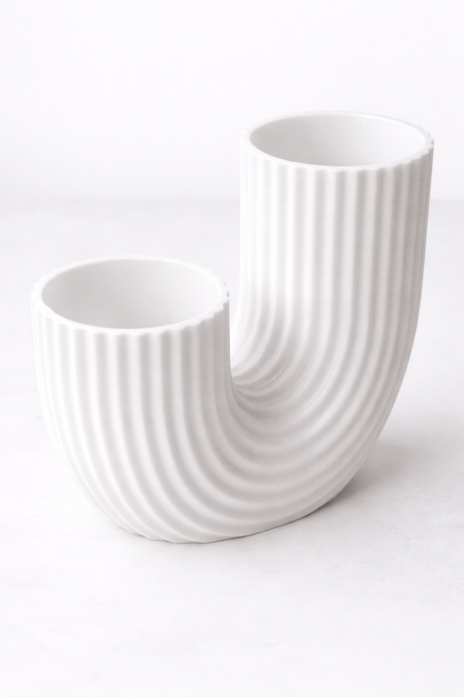 A sculptural statement piece designed with a smooth U-shaped silhouette and vertical ribbed texture. This vase brings a clean, architectural feel t...