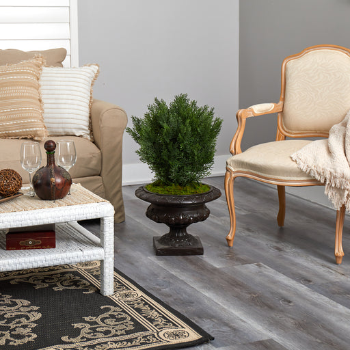 ÁRBOL ARTIFICIAL DE CEDRO DE 30” EN URNA COLOR HIERRO