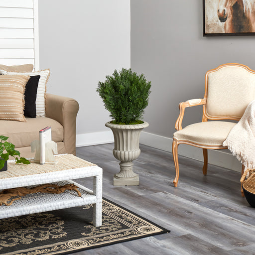 ÁRBOL ARTIFICIAL DE CEDRO DE 39” EN URNA ACABADO EN ARENA