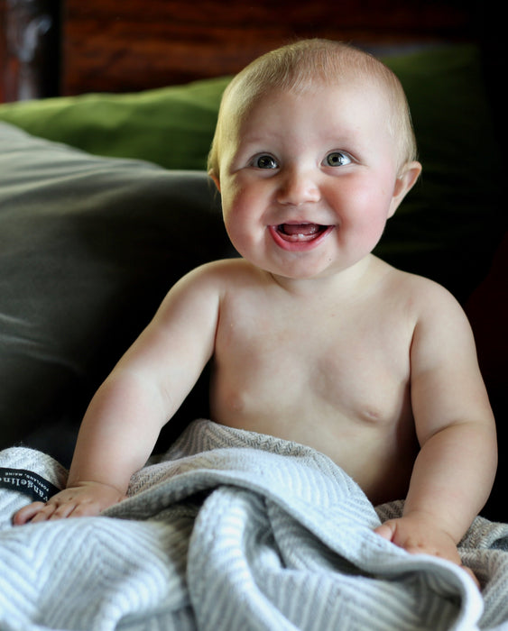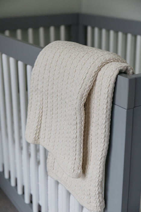 Paseos en cochecito y tiempo boca abajo. Acurrucado por la noche. Tejido para durar. La manta para bebé que hace que las prendas usadas sean algo bueno. Prelavado/Preencogido.