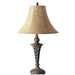 Aporte un toque de diseño vintage a cualquier espacio de su hogar con esta lámpara de mesa de bronce antiguo tallado con pantalla texturizada. El cuerpo principal y la base de la lámpara están hechos de poliresina y tienen un acabado en bronce antiguo. La base tiene forma redonda con cuatro pies rectangulares para mayor estabilidad. Extendiéndose desde la base, hay un patrón de hojas estrecho que se ensancha a medida que avanza hacia arriba. El cuerpo principal tiene un patrón geométrico de hojas tallado. La pantalla de la lámpara tiene forma inclinada y está hecha de una tela de lino texturizada con costuras decorativas más oscuras. El contraste entre el cuerpo y la pantalla de lino le da a esta lámpara un aspecto único y realzará el aspecto de su dormitorio, salón o comedor. 32" alto x 19" ancho x 19" profundidad.