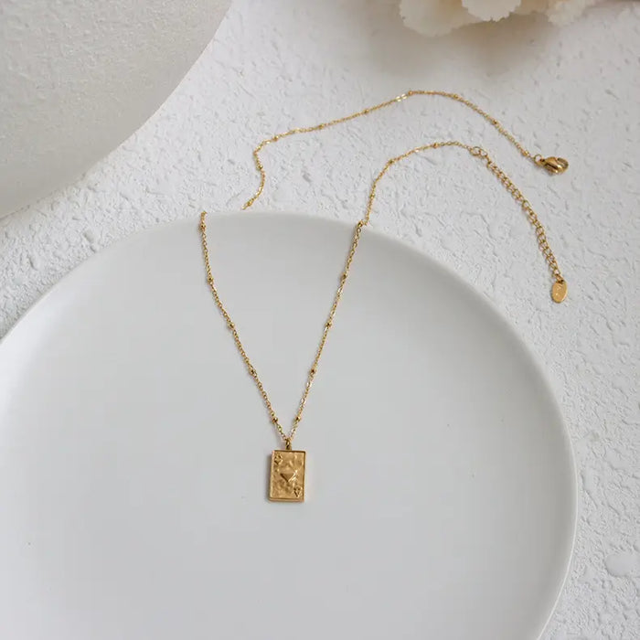 Realce su escote con nuestro elegante collar con colgante cuadrado en forma de corazón, un testimonio de sofisticación duradera y encanto individualizado. Meticulosamente elaborado con resistente acero inoxidable y lujosamente recubierto en oro de 18k, este collar ofrece resistencia y un toque de opulencia. El colgante cuadrado, elegantemente grabado con su letra inicial, infunde una esencia distintiva y personalizada a su repertorio de joyas. Con su elegante diseño geométrico y estilo contemporáneo, este collar es el accesorio ideal para mujeres exigentes que valoran la elegancia discreta y la expresión única. Eleva tu conjunto y muestra tu estilo distintivo con nuestro collar de corazón con colgante cuadrado.