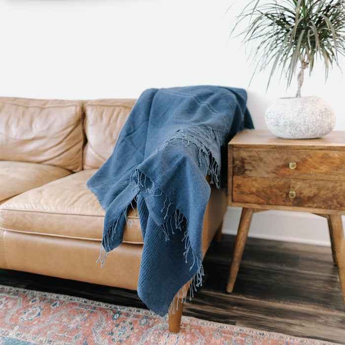 Exquisitely hand spun & woven by a small group of talented Ethiopian artisans. Dyed with AZO-free color and available in two unique designs, our lightweight queen blanket can be paired with a complementary comforter, duvet, or used on it's own. 100% locally sourced eco-friendly cotton. Machine wash & dry.