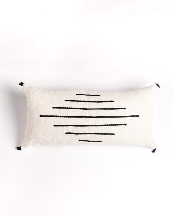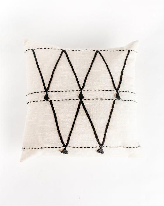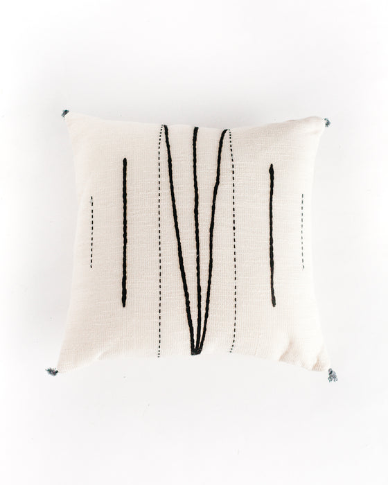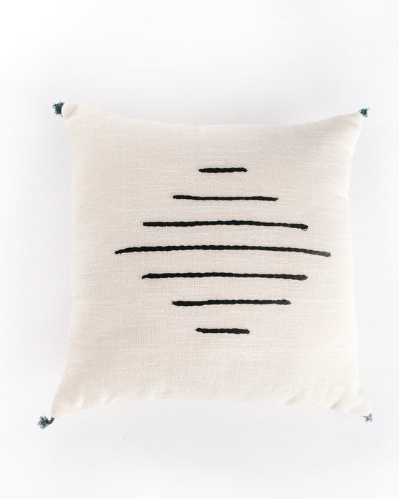 Designed in New York exclusively for Hygge Cave, this truly unique collection draws inspiration from Tunisia’s rich Berber heritage. Hand-woven cotton is embroidered with striking designs in black wool and finished with petite tassels.