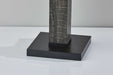 A modern pillar with rustic charm, this table lamp adds architectural flair to your bedside or living area. A reclaimed wood finish is mixed with black metals and a textured light grey fabric shade, creating a style that can fit perfectly into industrial or farmhouse-inspired homes. At almost 28" high, this lamp is a monumental piece of decor as well as a functional source of ambient lighting. A 3-way rotary socket which controls a bulb up to 100W or an equivalent CFL. The 3-way rotary socket switch will only work with a 3-way light bulb, otherwise, this lamp will function with a simple on/off switch at its highest setting. All lighting product is either UL or ETL listed, meaning that it has been tested and approved to meet the government-regulated safety standards for the USA. Bulb is not included.