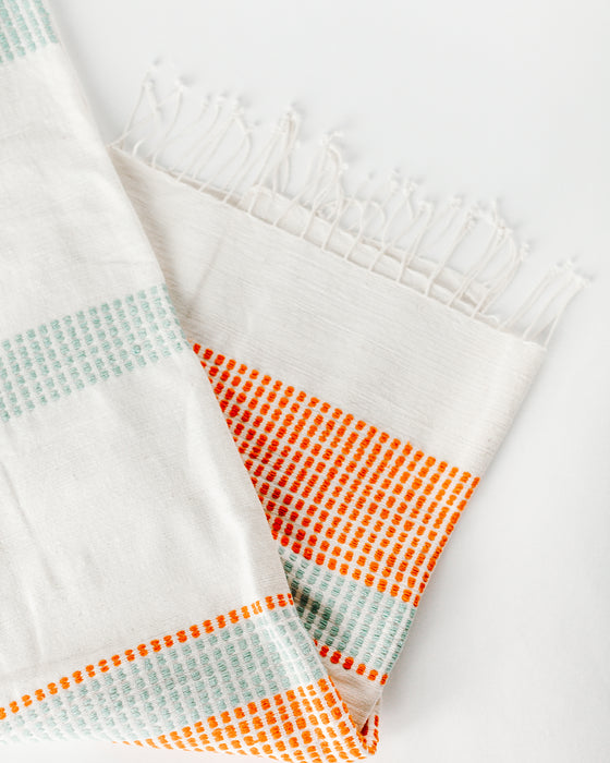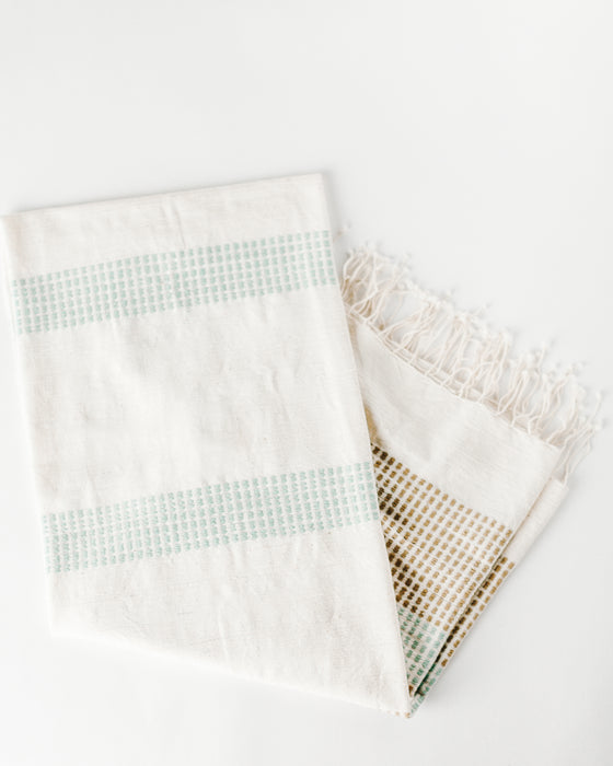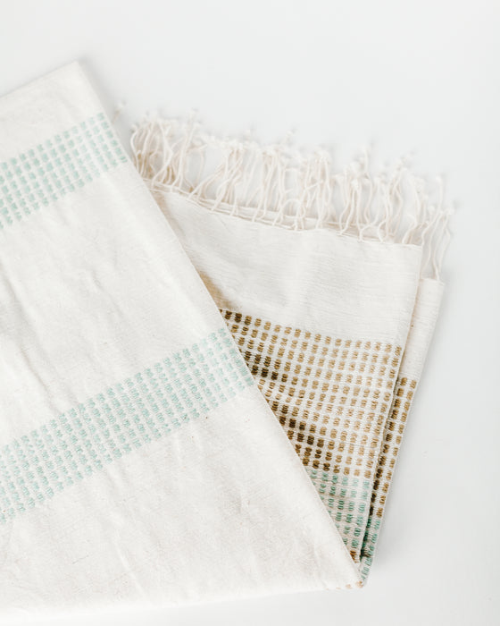 The Camden Collection pairs azure blue with bold dotted blocks of complementing color. These versatile artisan-made pieces can be used as bath towels, lightweight shawls and accent throws. Each is hand-woven in Ethiopia using time-honored weaving traditions and AZO-free dyes. Hand-spun Ethiopian cotton adds a uniquely rich texture that will continue to soften and become more absorbent with each wash/dry.