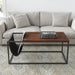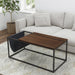 Add style and décor to your modern home entertaining space, with this Modern Geo Black and Walnut Sofa Table with Magazine Holder. The open geometric design and striking color combination of black and walnut brown will work great in your lounge area or living space. Crafted of MDF wood and powder-coated metal frame with a faux-leather magazine holder, this table is built to last. This offers more space for organizing your magazines, newspapers, or books with its modern leather magazine holder. The scratch-resistant sofa table offers comfort and durability, and a great way to enjoy this while entertaining your family or friends. This sofa table will be an additional impressive modern touch to your modern living space.