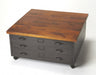 Highlight your home with this Industrial Chic Coffee Table that would accentuate your den or living room. Portraying a sturdy wooden table-top with three artists' styled drawing drawer, it provides sufficient, adequate and discreet storage options. The entire black and brown structure has a clean cut, sleek metal framework with caster wheels for easy movability.