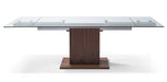 CONTEMPORARY GLASS EXTENDABLE PEDESTAL DINING TABLE