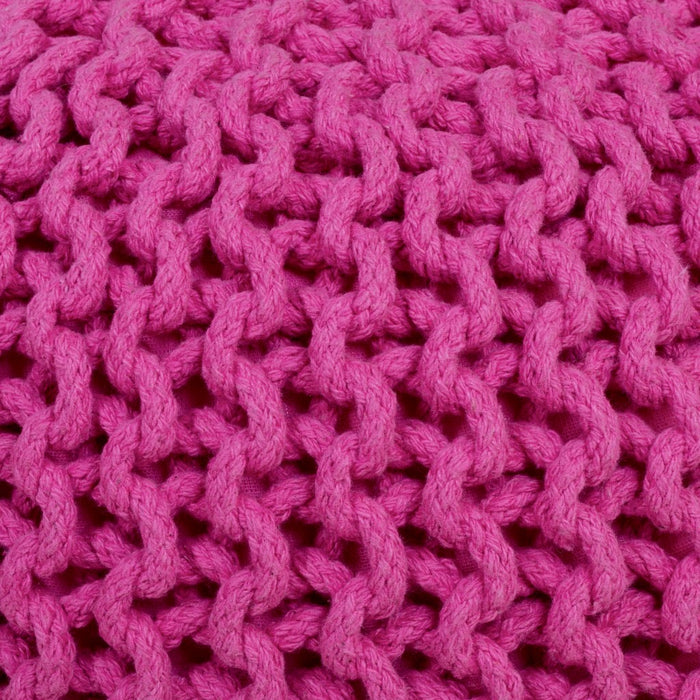 Instantly bring the style and vibe up in a room when you add this Cool Woven Fuchsia Pink Pouf Ottoman. This is the perfect companion for your feet after a long day, or to use as extra seating. Fun texture and design make this a great accent to your space. Light weight and easy to transport from room to room as seating needs arise. The measurements are 16" x 19" x 19".