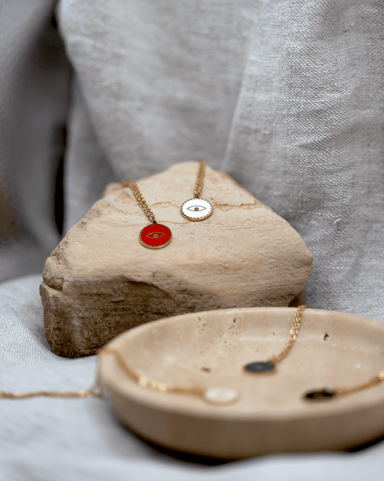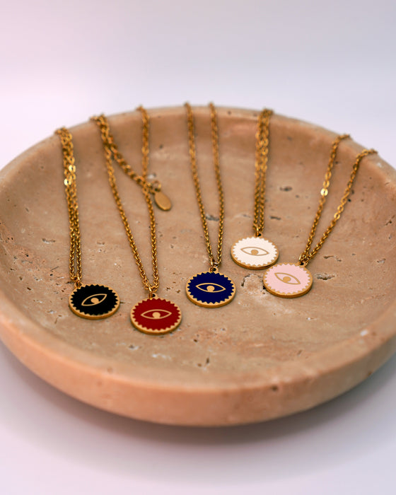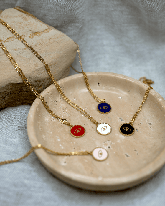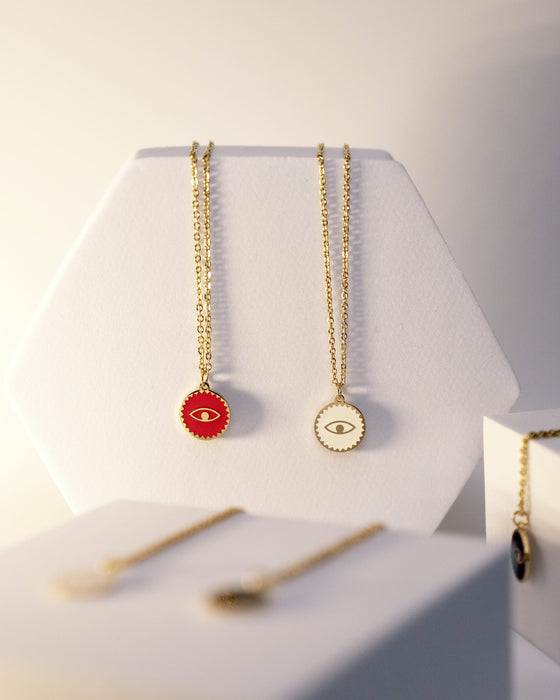 Eye pendant necklaces combine stainless steel and gold plating, creating a striking jewelry piece suitable for all ages. With meticulous craftsmanship and a unisex design, these necklaces cater to both men and women. The protective symbolism of the eye pendant adds significance and style to any attire.