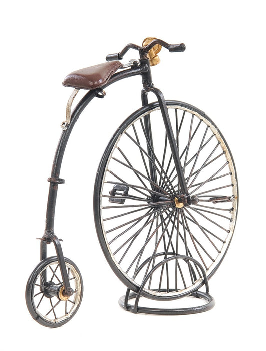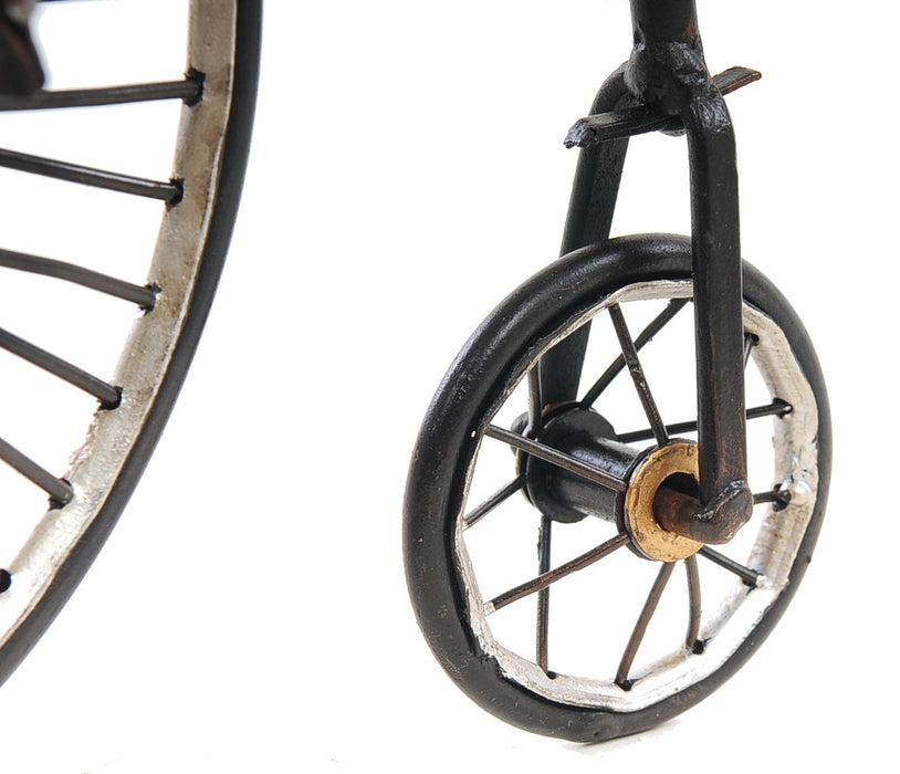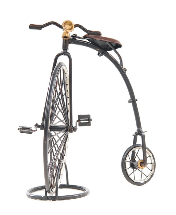 Spark up your library or living room with this c1870 High Wheeler Bicycle Sculpture. This unique vintage bicycle model is a piece of art that features authentic and intricate details including iron spoke wheels, seat, lightweight frame, and pedals. Accent your shelves with this fashionable and historic looking replica today.