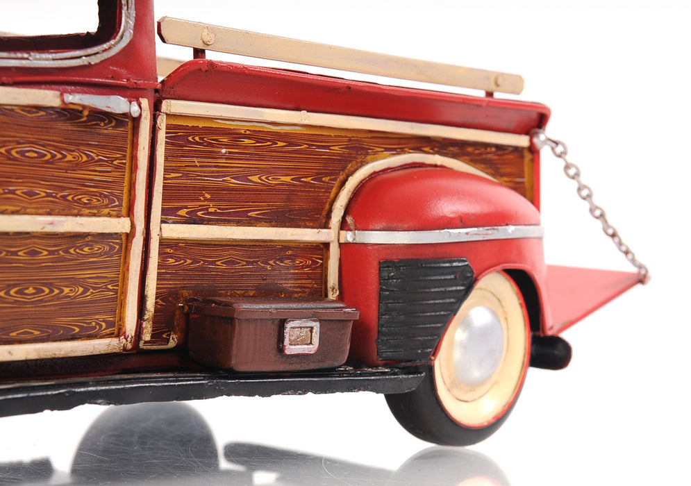 Unveiled just before US involvement in WWII, the production of the 1942 Ford Pickup soon stopped because of the war effort. Because of this, the 1942 model was extremely rare. The c1942 Ford Pickup Truck Sculpture is a 1:12 scale model of this iconic vehicle. Entirely made of metal, with rolling wheels, seats, steering wheel, and intricate details on the dashboard. It even features pare wheels, a tailgate that can be opened and closed, making this replica of the beloved 1942 Ford Truck is a true gem for collectors and enthusiasts.