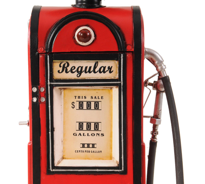 Eye-catching and super realistic, the Gas Pump Clock Sculpture is a beautiful antique replica of the first gas pumps built at the end of the 19th century. Hand shaped and hand painted in super cool vintage red, it features a quartz movement clock on top. Perfect for displaying in offices, game rooms, or dens.